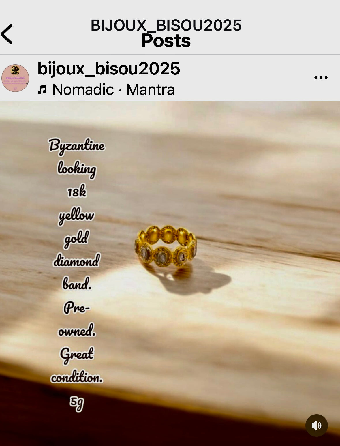 Byzantine-looking 18k yellow gold diamond ring. Pre-owned.